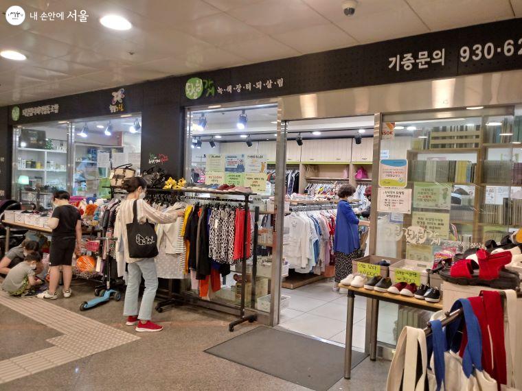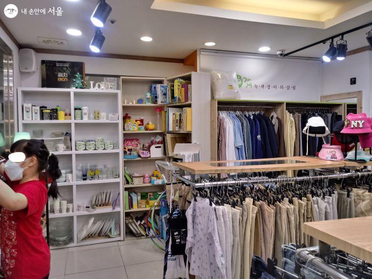 진열되어 있는 핀들은 색색깔로 다 예뻤다. 누군가 쓰던 것들이라는 생각이 들지 않을 정도였다. 옷 같은 경우, 바지는 5,000원 선에서 살수 있었다. 촌스럽거나 낡았다는 느낌 없이 동대문이나 쇼핑몰 같은 데서 물건을 구매하는 느낌이 들었다. 또한 텀블러와 그릇, 컵, 장난감 등 정말 대형마트를 축소해놓은 것처럼 없는 것이 없었다.
