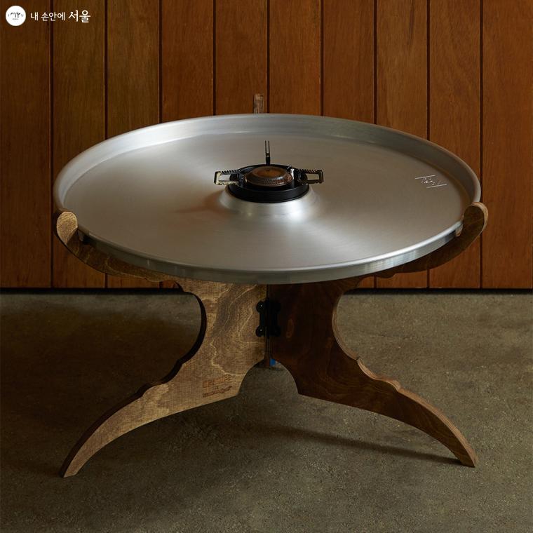 불(火)+소반(小盤)의 의미를 가진 상의 중앙에서는 불이 솟구쳐 오른다. 15초 만에 상이 차려지고 어디든 편하게 운반 가능한 불소반은 조선시대의 소반을 그대로 재현한다. 1960년대의 알루미늄 밥상과 현대의 부탄 로스터가 결합한 <불소반>을 통해 사용자들은 시대를 아우르는 만족스러운 한 끼를 맛볼 수 있다.