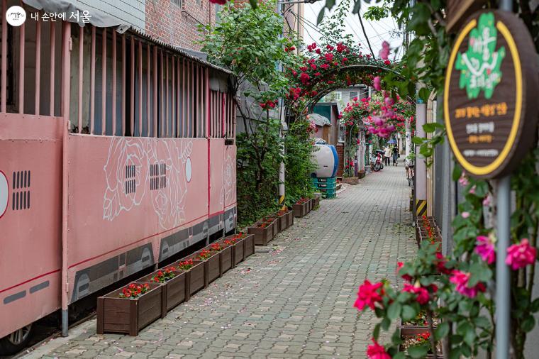 동화 속에 들어와 있는 것 같은 착각을 주는 장미마을의 터널 ⓒ유서경