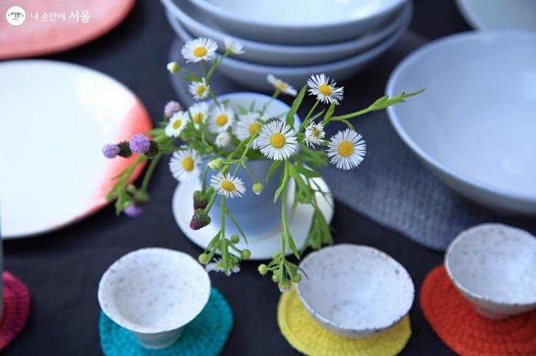 초록빛 자연이 도심 풍경에 생기를 불어넣도록 하자는 그린테이블 캠페인. 도자기 장인이 빚은 그릇에 자연이 담겨 있다. ⓒ이선미