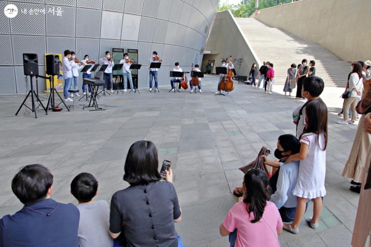 시민들이 하트하트오케스트라 현악앙상블을 감상하고 있다. ⓒ이선미