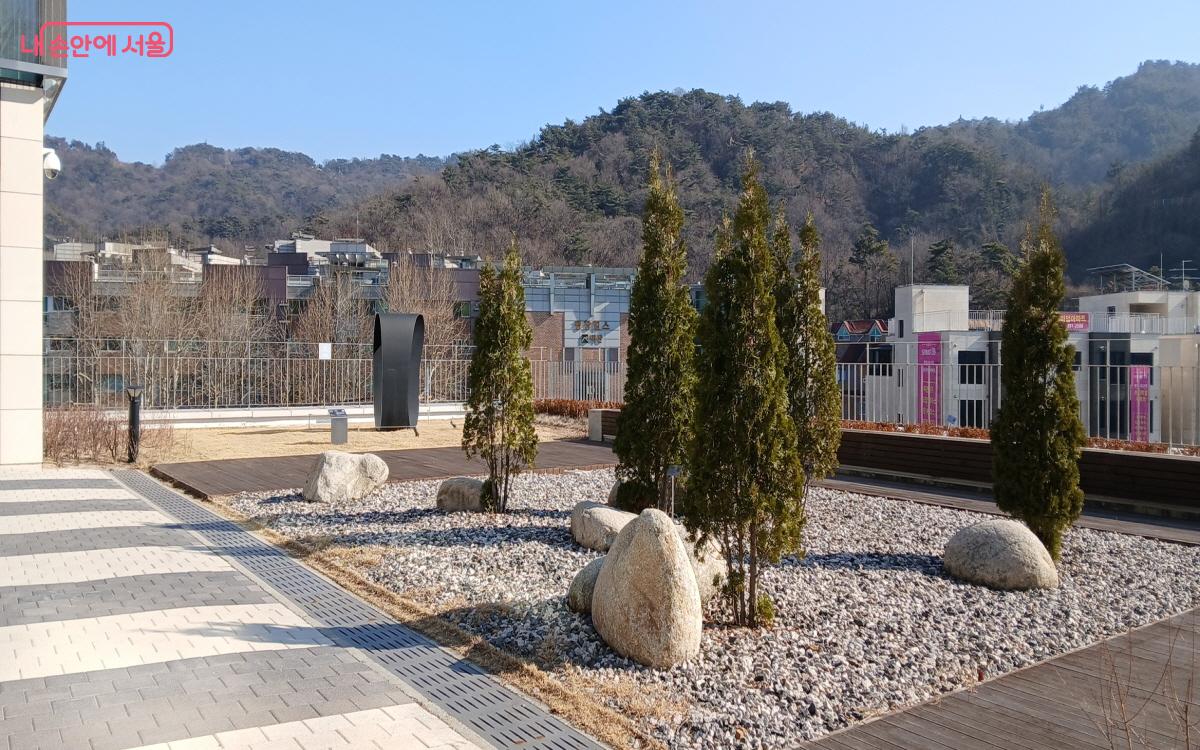 모음동 2층 외부 정원으로 미술 작품을 보며 휴식을 취할 수 있는 공간 ©최은영