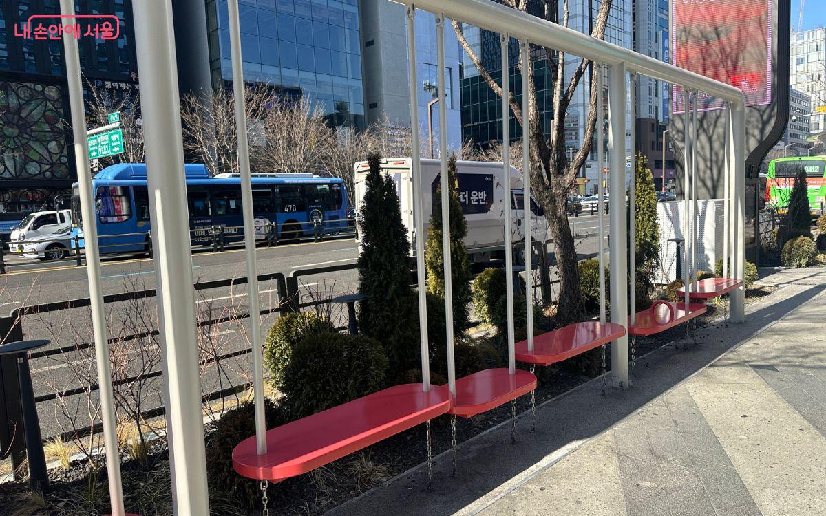 보행 편의성을 높이기 위해 기존에 설치된 석재 원형 벤치 52개를 철거하고 보행로를 넓혔다. 또한 단조로웠던 조경을 재구성하고 놀이형 그네 의자와 야외 벤치를 새롭게 배치해 걷기 좋은 거리로 개선했다.