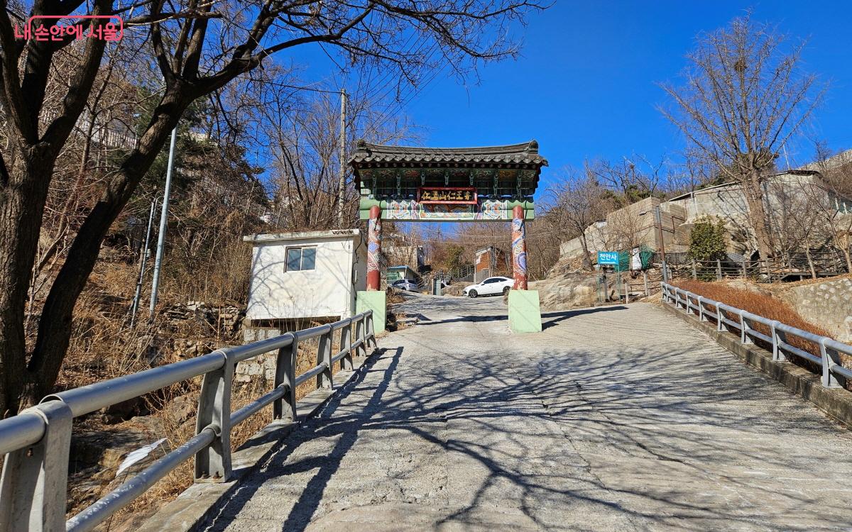 산자락에 있다보니 꽤 가파르게 올라가 인왕사 일주문을 통과한다. ©이선미