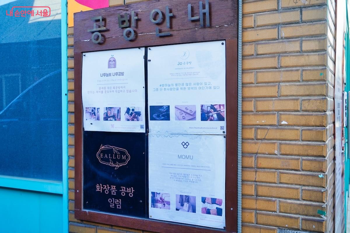 다음으로 소개하고 싶은 공간은 공방이다. 예술촌에 왔는데 예술인과 소통할 기회가 없어 아쉽다면, 또는 내가 직접 참여하여 작품을 만들고 싶은데 방법을 모르겠다면 이곳 공방에 와 원데이 클래스로 하루를 즐겨도 좋다. 물론 무료 프로그램은 아니다. 문래예술촌에는 나무 공방, 은 공방, 화장품 공방 그리고 바느질도 배울 수 있는 공방까지 있어 고르는 맛이 있다.