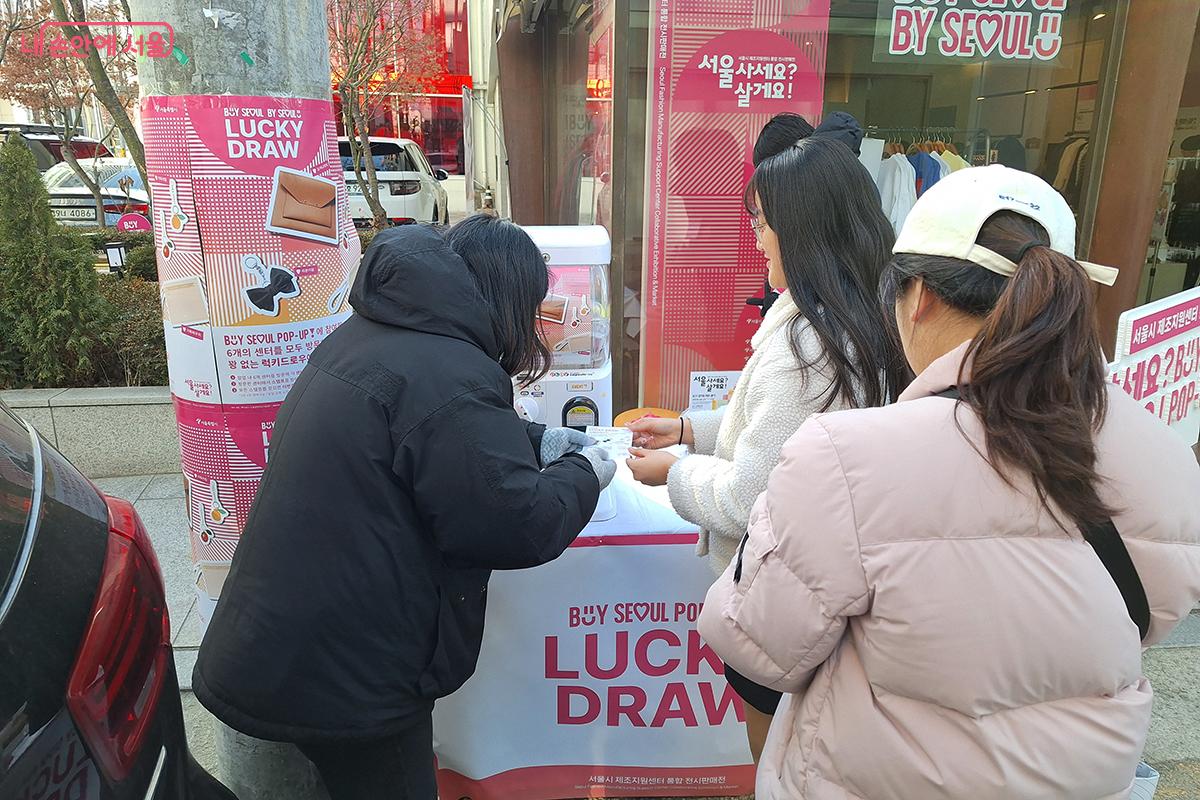 팝업스토어 입구에서 방문객들을 위한 굿즈 증정 이벤트가 열렸다. ©백승훈