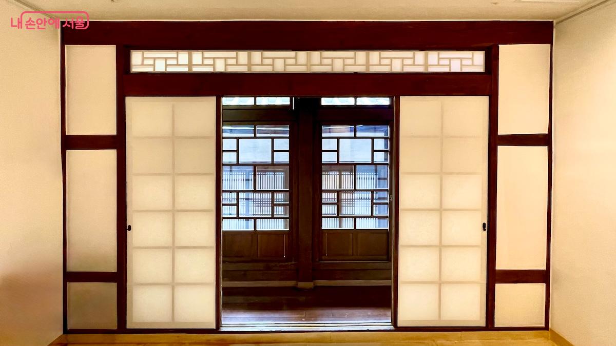 덕분에 가옥 안에서 느낄 수 있는 분위기는 전통 한옥과는 사뭇 다르다. 가장 특징적으로 구분되는 점은 채와 채 사이, 현대식으로 표현하자면 방과 방 사이를 쉽게 오갈 수 있는 좁은 복도를 설치했다는 점이다. 이 복도에는 전통 양식의 큰 창을 설치해 가옥의 안쪽인 ‘중정’의 전경을 사방에서 볼 수 있도록 했다. 외부와 내부를 분리하는 동시에 전통 한옥의 개방감을 잃지 않는 융합을 확인할 수 있다.