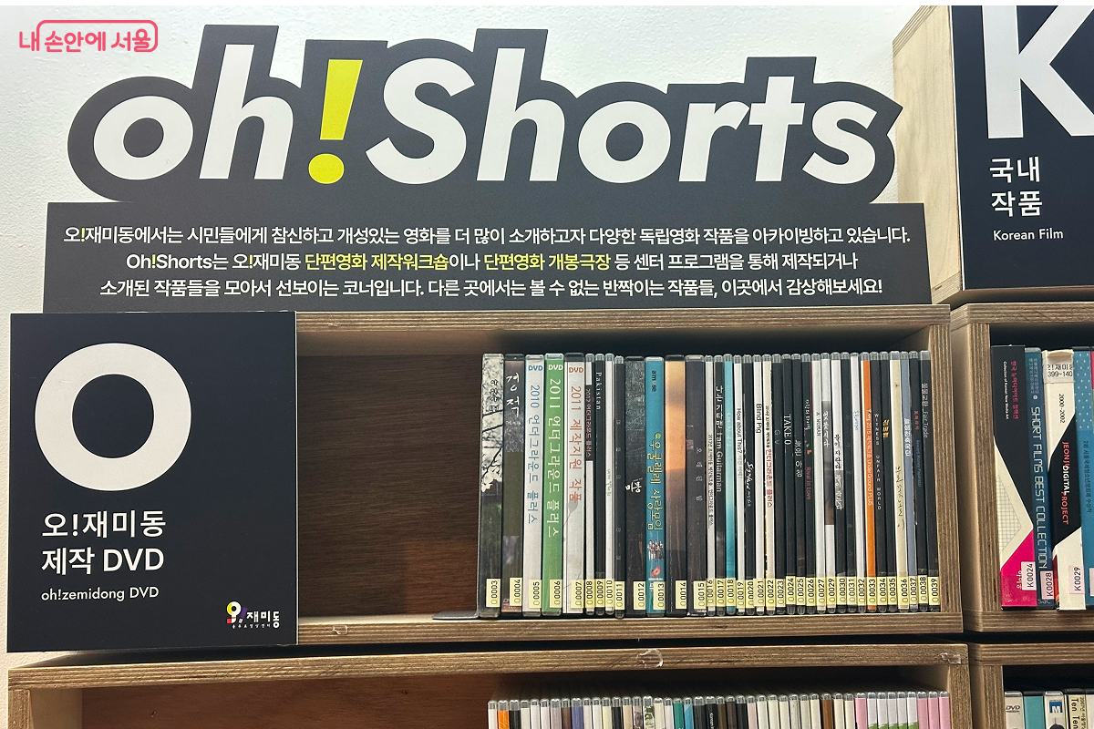 '오!재미동'의 핵심 매력 중 하나는 독립·단편영화를 ‘아카이빙’하고 있다는 점이다. 다른 상업영화관에서는 보기 힘든 실험적인 작품들이 DVD로 정리돼 있고, 직접 골라 감상할 수 있다. 특히 이곳에서 기획하거나 제작 지원을 통해 완성된 작품들은 ‘오!재미동 제작 DVD’로 별도 코너에서 큐레이션된다. 영상 창작자와 관객이 직접 만나는 프로그램도 간헐적으로 운영된다.