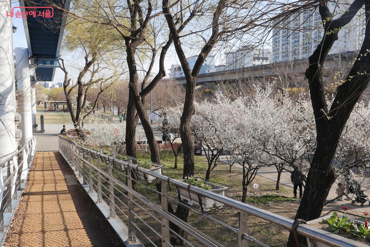 식재된 매실나무는 경남 하동군에서 기증한 것으로, 이곳까지 옮겨 심어져 정성껏 가꿔지고 있다. 이런 까닭인지 이맘때쯤이면 활짝 핀 매화를 구경하러 오는 시민들의 발길이 이어진다. 매화가 지면 바로 벚꽃이 피어 산책하기 좋다.