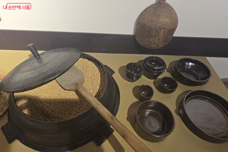 예전 부뚜막과 부엌을 재현해 놓은 공간에서 장을 만들기 위해 콩을 삶는 모습이 정겹다. ⓒ조정미