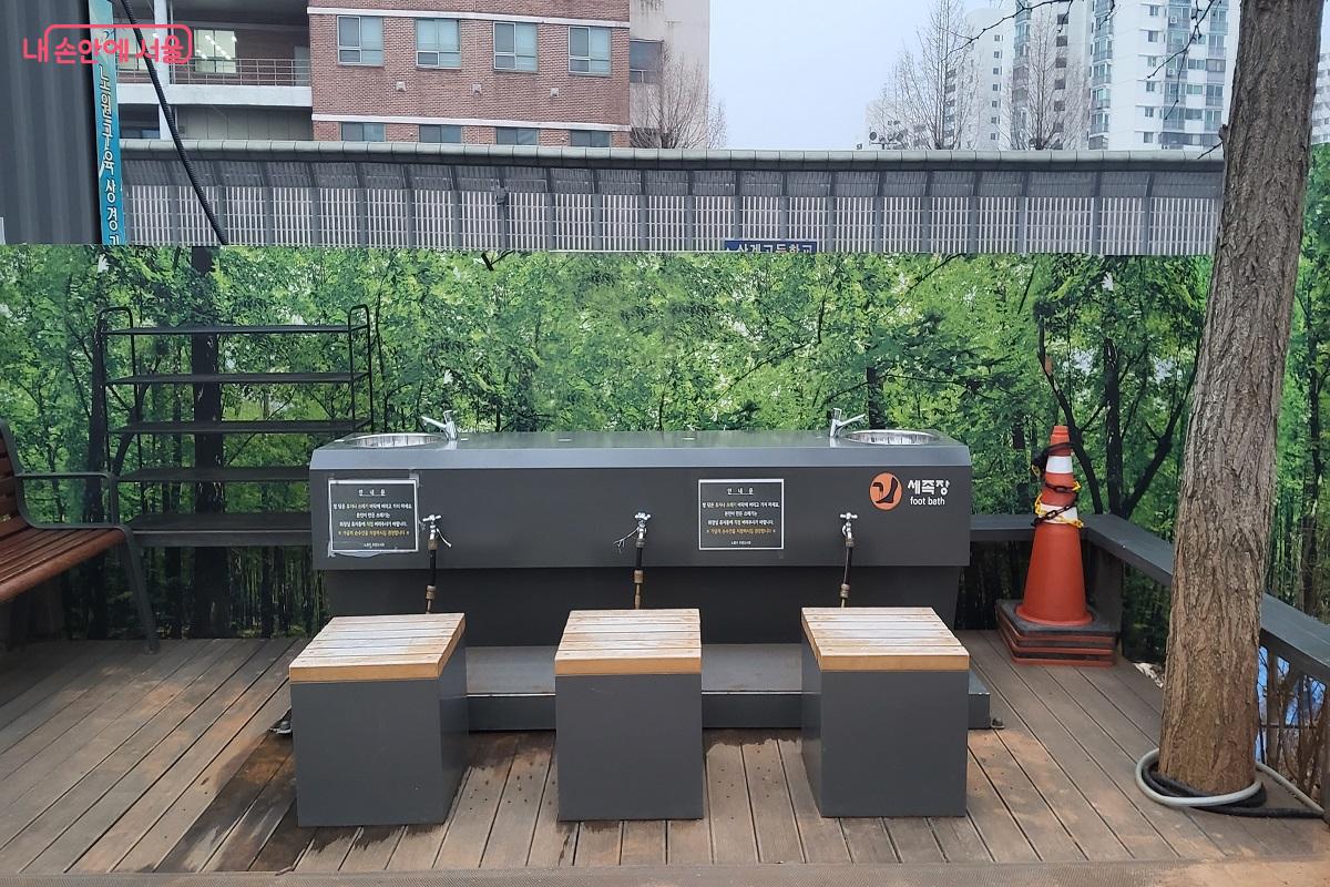 맨발 걷기 후 씻을 수 있는 세족장이 설치되어 있다. ©권수진
