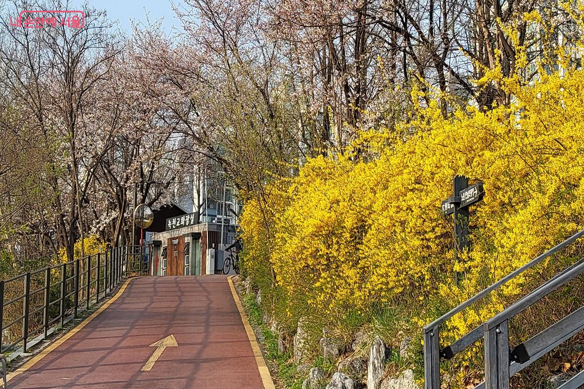 개나리게 흐드러지게 피어 있는 창동교 방향 입구 ©권수진 -