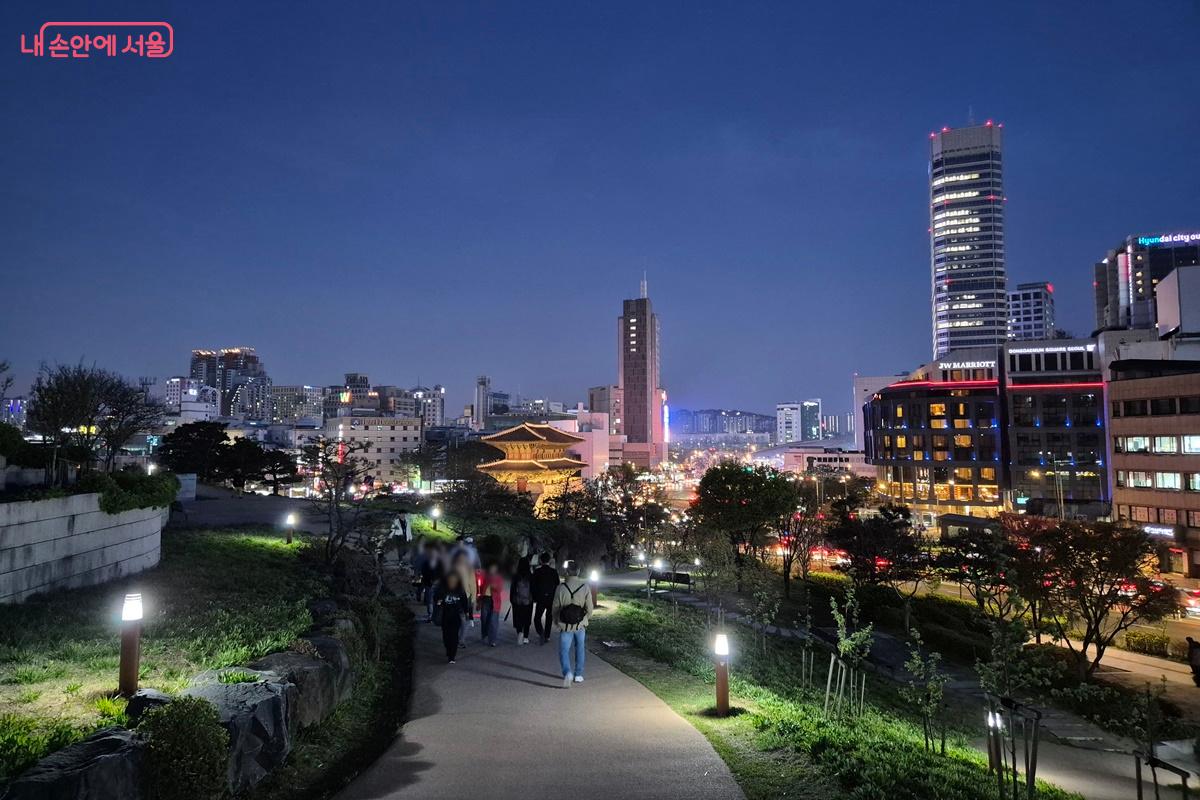 흥인지문공원의 역사를 들으며 해설사 따라 걷는 길, 시작 초입인데도 서울 도심 야경이 아름다워 발걸음이 자꾸 늦춰진다. 서울한양도성 낙산구간에는 가로등이 설치되어 있어 헤드랜턴을 준비할 필요가 없고, 출발점과 시작점이 지하철로 연결되어 접근성이 좋다. 금요일 퇴근 후 가볍게 즐길 수 있는 프로그램이다.