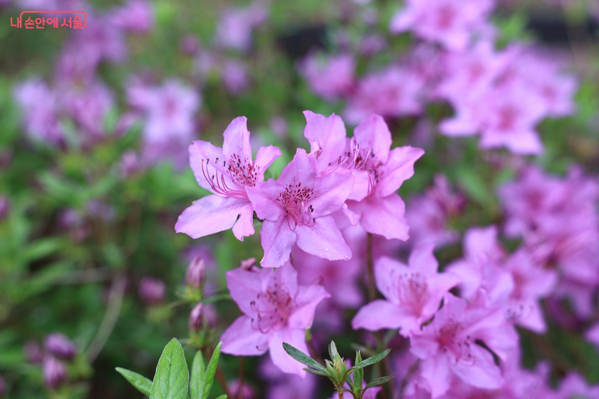 촉촉히 내리는 봄비를 맞고 있는 철쭉꽃 ©박우영 -