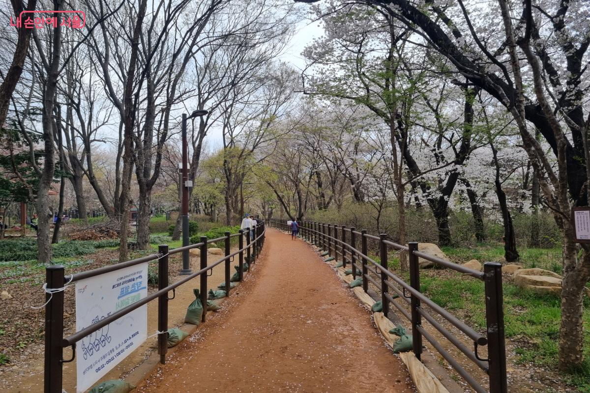신림계곡지구 황톳길에 도착하자 가장 먼저 눈에 띈 것은 파릇한 새잎 사이에 만개한 봄꽃이었다. 황톳길을 따라 줄지어 선 벚나무들이 연분홍 꽃잎을 활짝 피워내며 방문객을 맞이했다. 그 아래를 걷는 동안 부드러운 황토의 감촉과 함께 코끝을 간질이는 벚꽃 향기는 일상에서 느끼기 어려운 특별한 감각을 선사했다. 맑은 하늘 아래, 바람에 실려 오는 꽃향기와 함께하는 산책은 몸과 마음 모두에 깊은 여운을 남겼고 꽃잎이 바람에 흩날리며 황톳길 위로 내려앉는 풍경은 마치 봄의 축제 같았다.