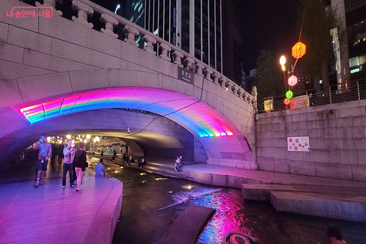 청계천의 밤이 형형색색의 조명으로 물들었다. Ⓒ이동영