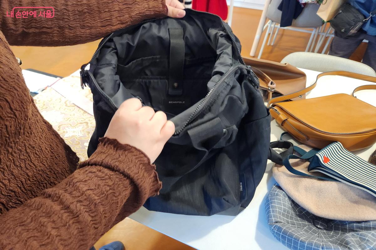권보현 씨(28세)는 은평구에서 지인의 추천으로 행사를 알고 왔단다. “저도 옷을 좋아하고 옷을 자주 사는 편인데 저라도 옷을 덜 사야겠다고 다짐하고 실천하고 있어요. 어깨에 멜 검은색 가방이 있다면 좋겠다고 생각했는데 마침 그런 가방을 발견했어요.”라면서 가방을 보여준다. 권보현 씨는 물물교환을 통해 옷을 교환하는 것도 있지만, 이웃과 소통하는 창구 기능도 해주는 것 같아서 이런 행사가 자주 열리길 바란다고 했다.
