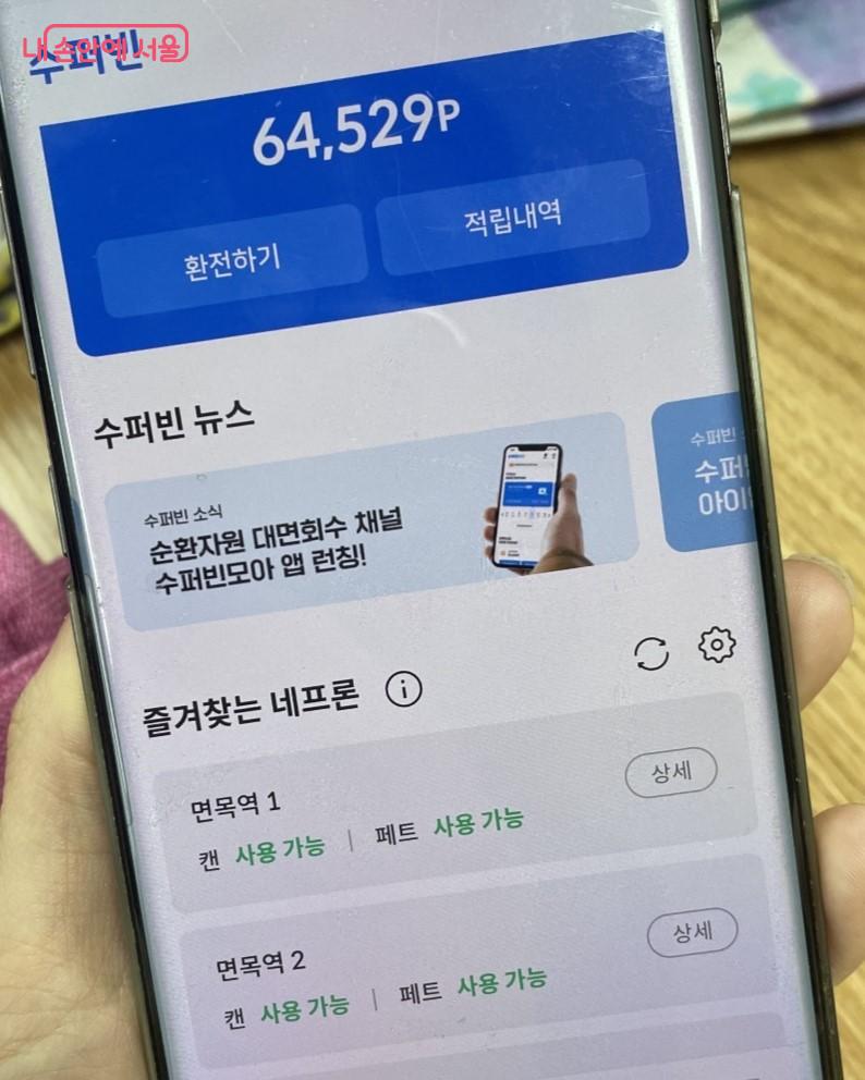 수퍼빈 어플 화면 ©황수민