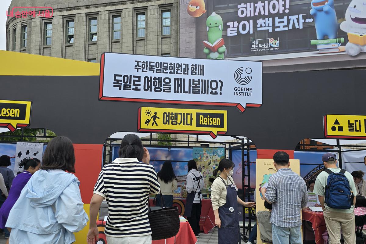 주한독일문화원이 함께한 '독일로 여행을 떠나볼까요?' 부스에서 체험 참여하는 시민들 ⓒ김경희