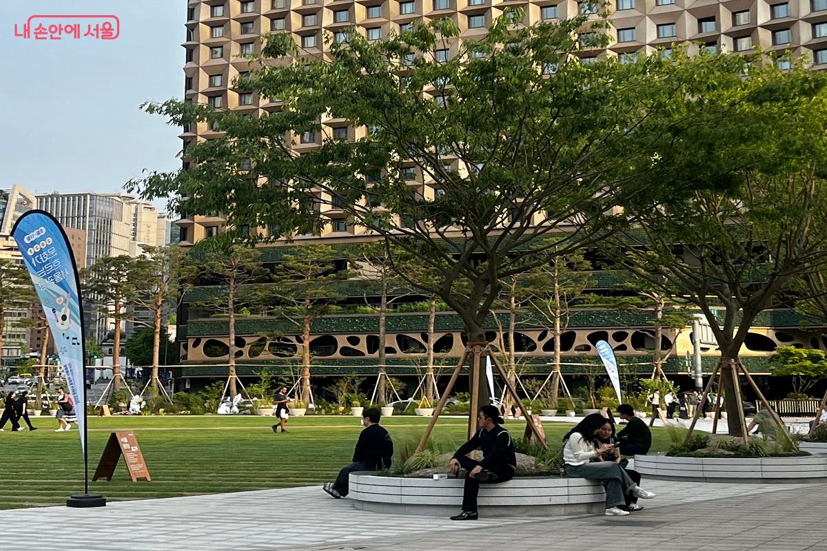 잘 꾸며진 드넓은 서울광장을 주변으로는 산책을 하거나 그곳을 지나가던 커플들, 시민들도 신나는 분위기의 음악에 이끌려 구경하고 지나가는 모습도 볼 수 있었고, 준비된 좌석에 앉아서 관람하지 않더라도 잠시 쉬어가듯 잔디마당 근처 벤치에서 구경하는 시민들도 여럿 보였다.