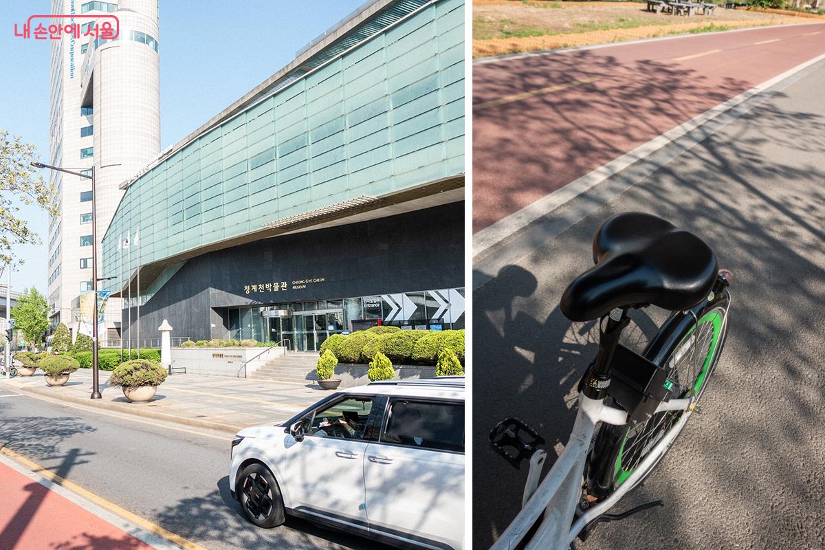 광화문에서 따릉이를 대여 받았다면 청계광장에서 시작되는 청계천 자전거길을 따라 달릴 수 있다. 차량과의 접촉을 피할 수 있지만 청계천을 내려다보려는 이가 있어 전방을 주시하는 것과 자전거 간 안전거리 유지도 필수다.