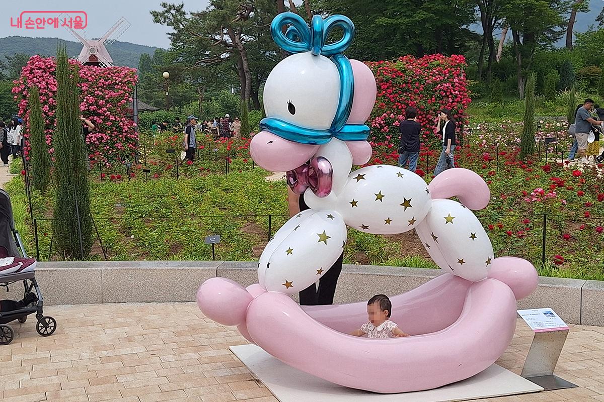핑크빛 열기구 모양의 '장미 품은 정원' 로고 아래 서면 누구나 동화 속 주인공이 된다. ©정향선