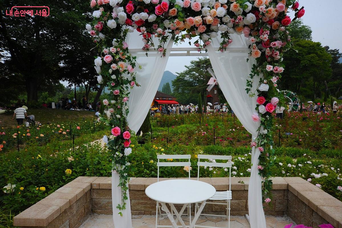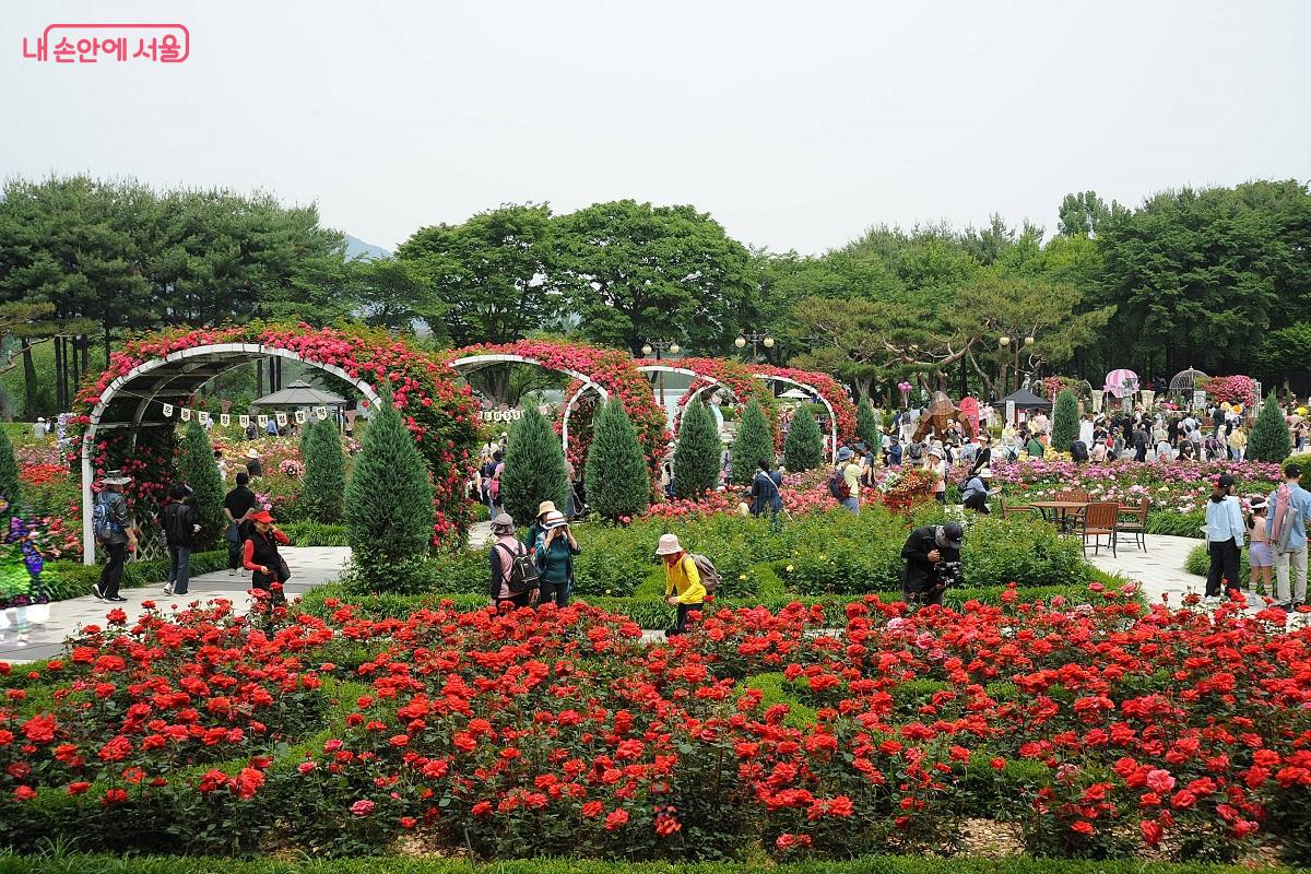 100여 종, 4만 5,000주의 장미가 식재된 장미원에는 축제 기간 동안 여러 종류의 장미들이 릴레이처럼 연속해서 개화한다. 로즈어드 샤틀렛, 컴페션, 클레오파트라 등 대표적인 장미뿐만 아니라 외줄기 꽃대에서 독특하게 피어나는 스탠다드 장미는 또 다른 장미의 우아함을 보여준다. ‘장미나라 여행’을 주제로 장미원 곳곳에 설치된 ‘로즈트립 포토존’에서는 멋진 배경과 함께 아름다운 추억 사진을 만들 수 있고 지난해 사진공모전 수상 작품도 감상할 수 있다.