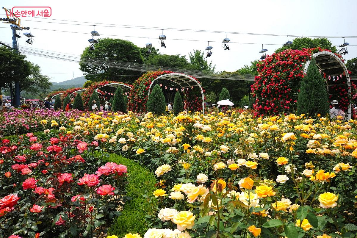 장미원과 스카이 리프트가 멋진 풍경을 보여준다. ⓒ조수봉
