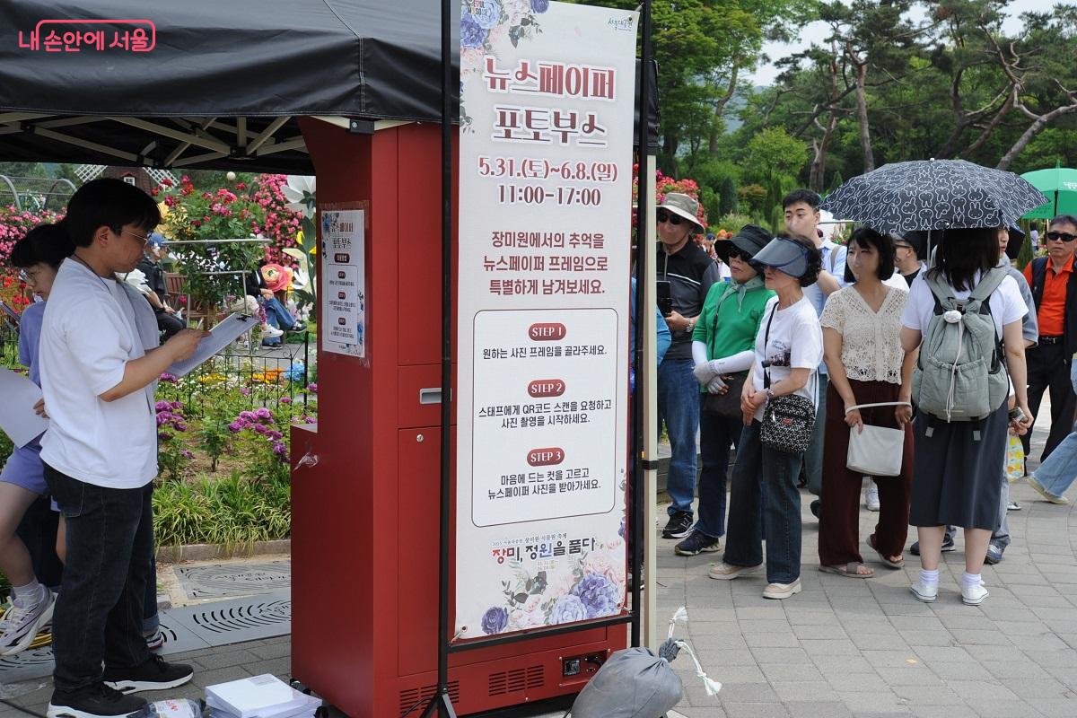 뉴스페이퍼 프레임으로 제작된 자신의 사진을 무료로 받을 수 있는 포토부스 ⓒ조수봉