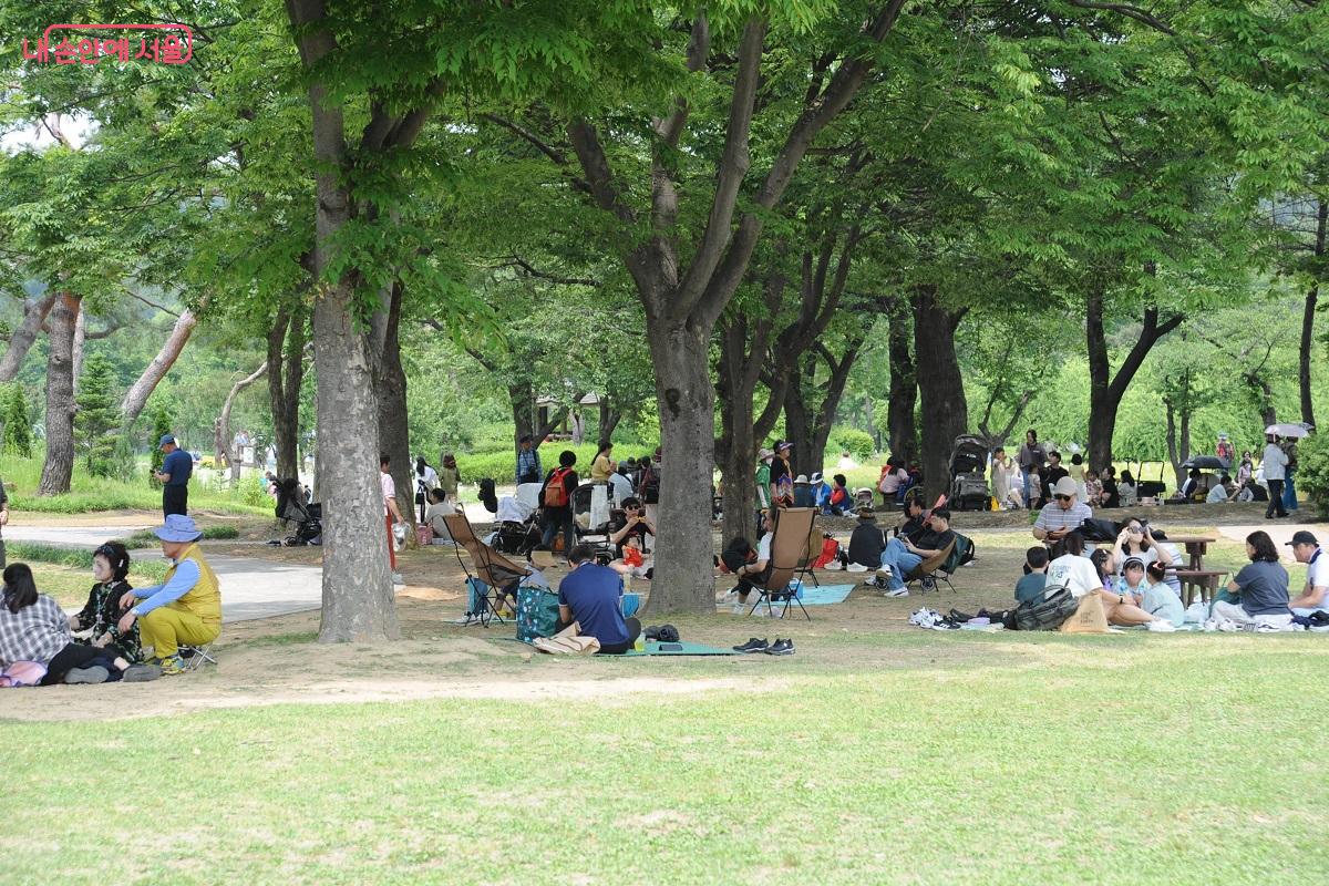 더워진 날씨에 많은 관람객들이 테마가든 내 ‘휴(休)정원’의 나무 그늘을 찾았다. ©조수봉