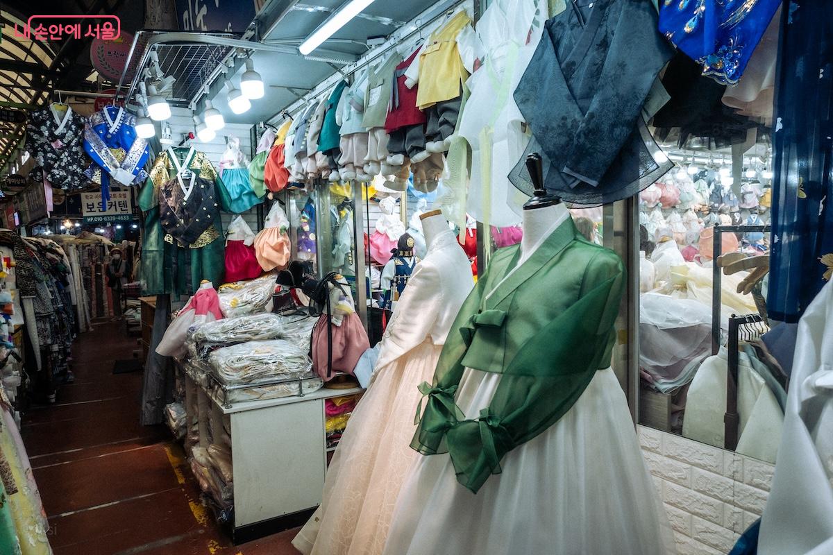 명절이면 아이에게 입힐 한복이나 윤달이나 윤년에 맞춰 주머니가 없는 수의를 장만하기 위해 광장시장을 찾는다. 옷감이나 원단을 판매하는 매장 일부는 용도(음식 만들기, 곡물 보관)에 맞게 주머니를 제작해 판매하기도 한다. 우주에서 가장 좋다며 품질을 약속하는 위생 행주 또는 가제손수건도 찾아볼 수 있다.