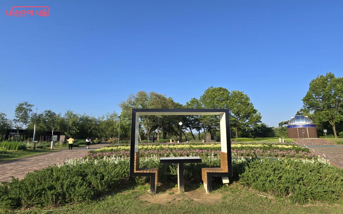 꽃 배경으로 사진을 찍을 수 있는 액자 정원도 마련되어 있다. ⓒ염지연
