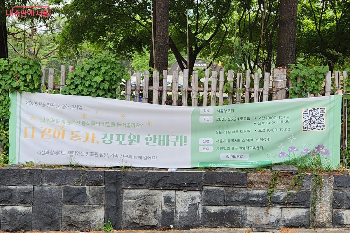 ‘2025 서울창포원 숲해설사업’으로 5월부터 11월까지 매주 토요일 오전 10시부터 1시간 30분 동안, 해설과 함께하는 재미있는 창포원 탐방 프로그램을 진행한다. 서울시 공공서비스예약 누리집에서 확인이 가능하다. 성인 및 가족으로 20명 예약 신청을 받고 있다. 6월 첫째 주 토요일, 창포원의 다양한 이야기를 만날 수 있는 ‘다 같이 돌자, 창포원 한 바퀴!’에 참여했다.