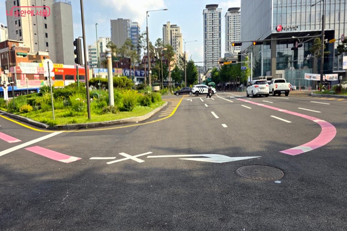 을지로4가 교차로는 도로선형 개선 및 노면 색깔유도선 설치 등으로 편의와 안전을 동시에 잡았다. ⓒ김윤경