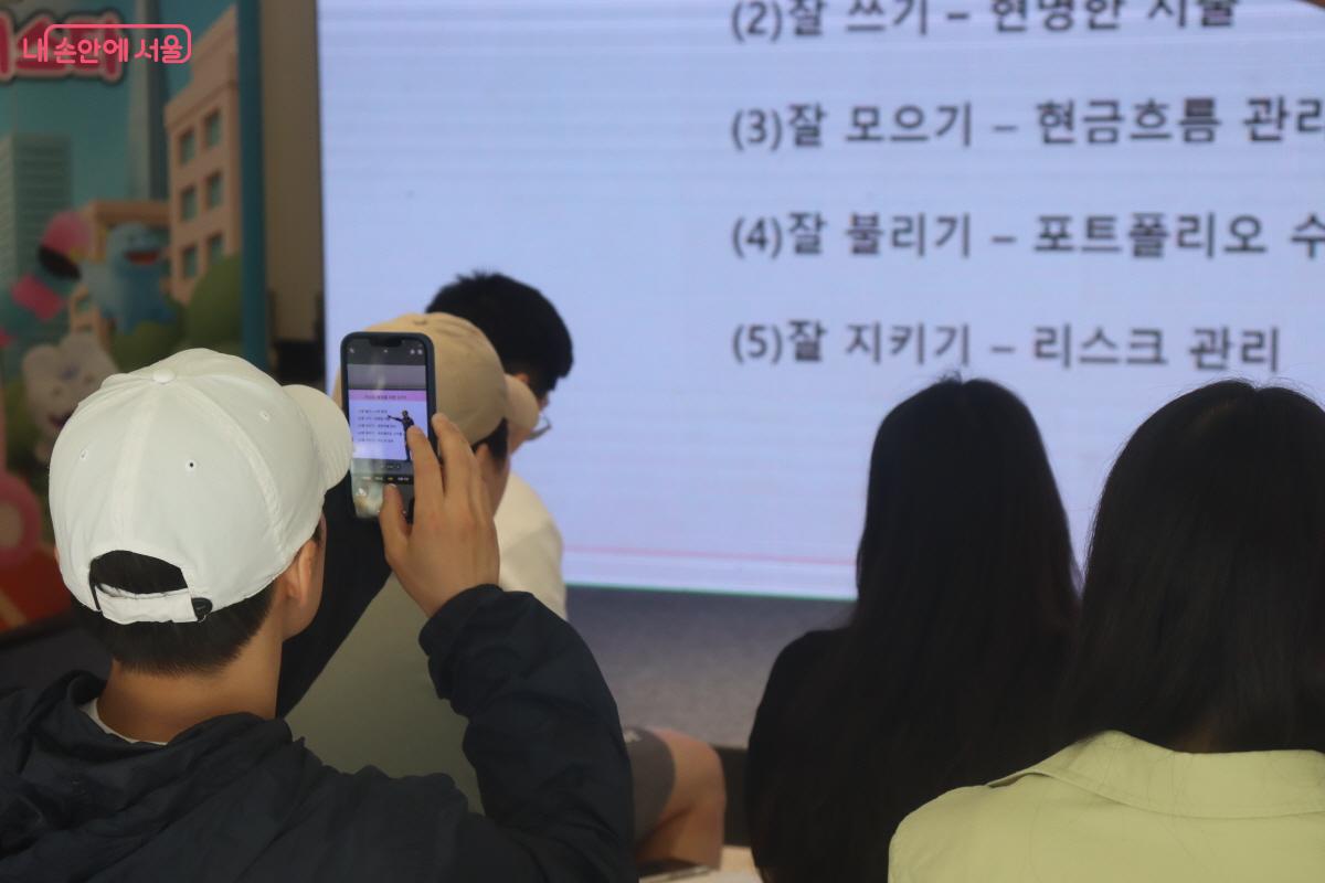 청년들이 ‘자산형성 & 재무설계 꿀팁’에 대한 정보를 다룬 강의를 열심히 듣고 있다. ©조수연