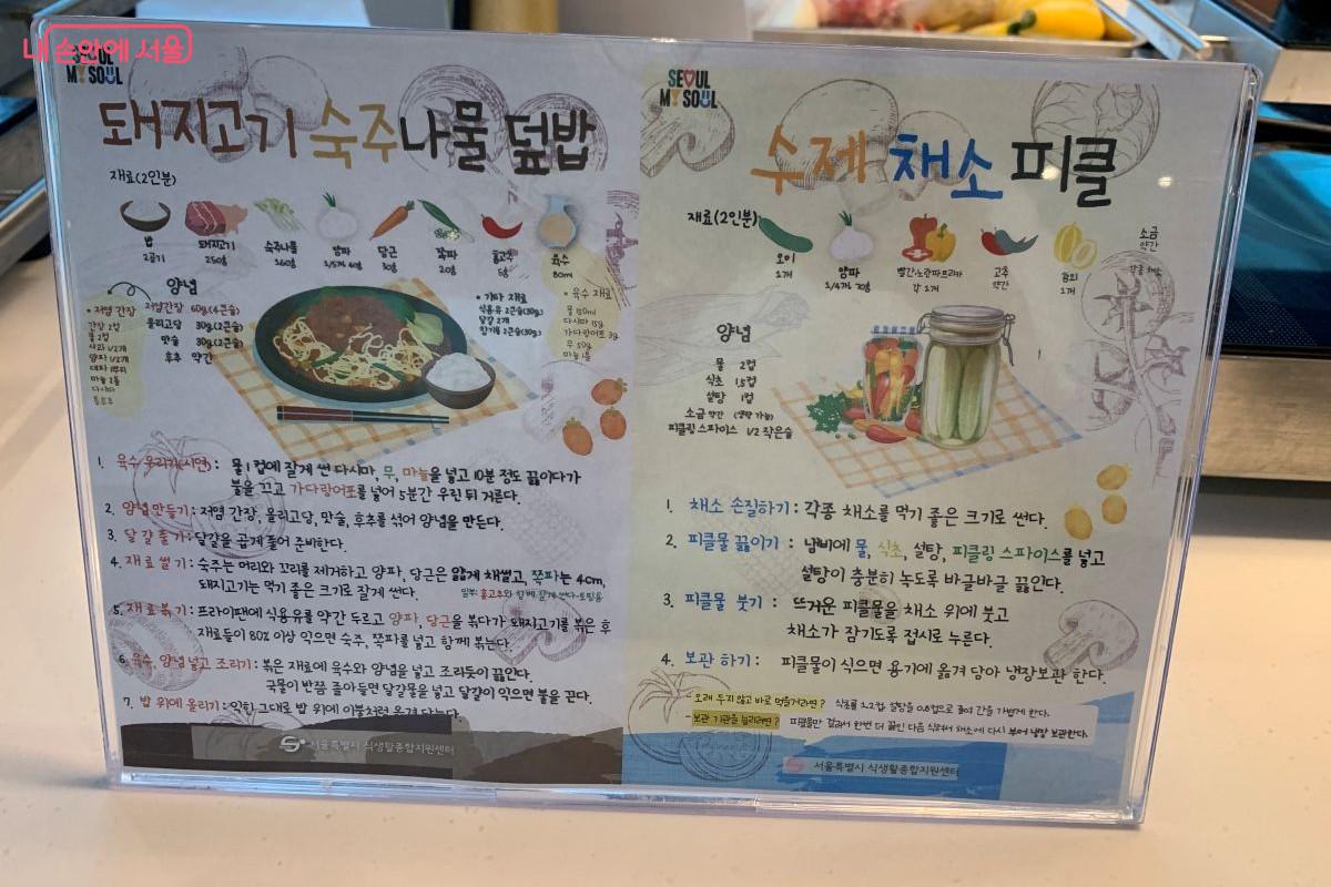 실습 요리인 '돼지고기 숙주나물덮밥'과 '수제 채소 피클' 레시피 ⓒ김아름