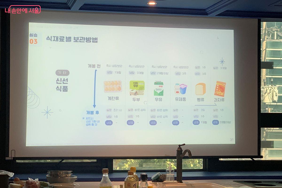 이론 교육 내용 중 '식재료별 보관방법' ⓒ김아름