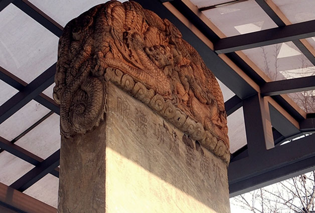 청나라에 대한 항복의 기록이 새겨진 삼전도 비석은 생각보다 커서 누구나 고개를 들어 올려다 봐야할 정도다. 높이 395cm, 너비 140cm이며 머릿돌인 이수와 바닥돌인 귀부를 갖춘 대형 비석이다. 귀부(龜趺, 거북이 모양을 조각한 받침돌) 위에 비문을 새긴 몸돌을 세우고 위에는 용 모양을 새긴 머릿돌을 장식했다. 머리 부분에는 두 마리의 용이 여의주를 물려고 입을 벌리고 있고, 한 마리의 용은 여의주를 감싸고 있다. 꼭 여의주를 빼앗고 있는 듯한 형상처럼 보였다. 마치 청나라가 조선의 국토와 백성들을 유린했듯이. 바로 옆엔 다른 생김새를 한 거북이 모양의 받침돌이 남아있다. 이는 더 큰 규모로 비석이 조성되기를 바라는 청나라 측 요구로 원래 만든 귀부가 용도 폐기되면서 남겨진 것으로 추측되고 있다.