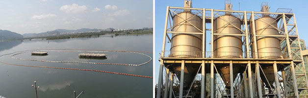 조류차단막 설치(강북취수장)(좌), 분말활성탄 비축(뚝도정수장)(우)