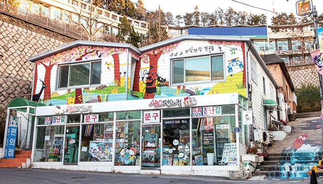 각종 조형물과 벽화를 컬러감 그대로 감상 할 수 있는 낮도 좋지만, 재미로의 하이라이트는 조명이 켜지기 시작하는 저녁 무렵. 골목 끄트머리의 ‘만화의 언덕’에 ‘로봇, 찌빠’부터 ‘달려라 하니’까지 한국 만화사를 빛낸 인기 캐릭터들이 조명에 힘입어 별처럼 도드라진다. 재미로를 걷는 사이 생각이 말랑말랑해진 아이들의 상상력에도 환하게 불이 켜지는 순간이다.