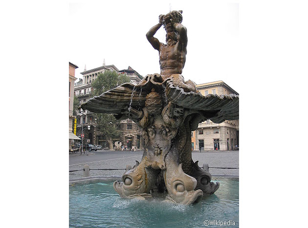 베르니니가 제작한 로마의 트리톤 조각상. 바다를 잠재우는 소라고둥을 불고 있다.